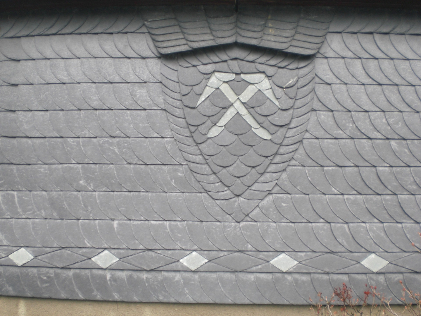 Das stilvoll mit Schiefer verkleidete Wohnhaus ist eines der ältesten in Grüna. Meisterhaft wurde der 6-eckige Schornstein sowie das Dachdeckeremblem in Schiefer eingedeckt. Dieser Anblick lädt manchen Spaziergänger zum Staunen ein.